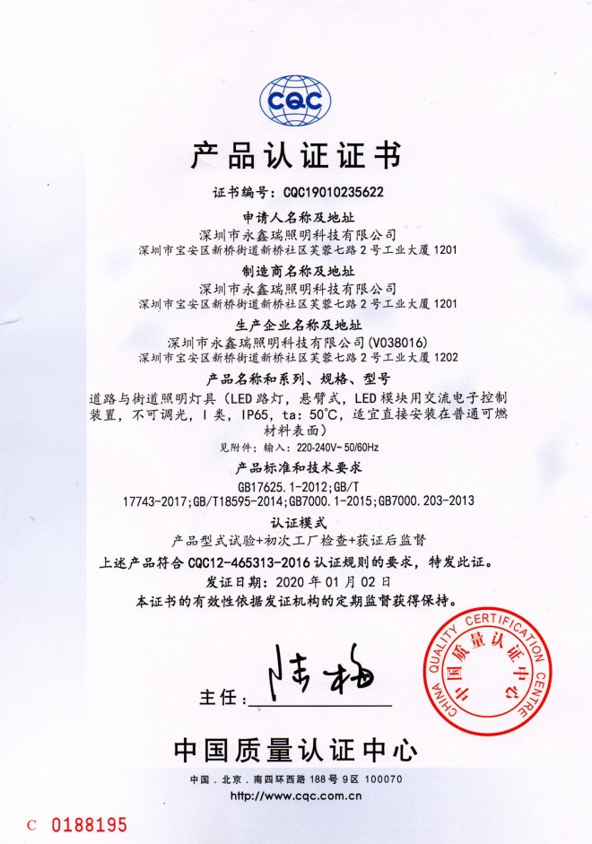 永鑫瑞秉承高效、綠色、環(huán)保的理念,是新時代節(jié)能燈具的先鋒。并通過了國內(nèi)外多項權(quán)威認證,如:ISO9001, CCC,CE,ROHS、防爆認證等。 產(chǎn)品廣泛應(yīng)用于:戶外照明、工業(yè)照明、體育球場照明、隧道照明、道路照明以及特殊防爆場所等,我們的產(chǎn)品遠銷于北美、歐洲以及其它如:巴西、日本、東南亞等國家,深受各國客商的認同與青睞。 永鑫瑞一直堅持以品質(zhì)第一、價格合理、交貨準時、客戶滿意的原則,以市場為導(dǎo)向,以真誠服務(wù)為宗旨,嚴格按照國際標準來要求自己,不斷提升產(chǎn)品質(zhì)量以及全面貼心的售后服務(wù)來贏得國內(nèi)外客戶的需求,為全球節(jié)能減排、綠色環(huán)保照明產(chǎn)業(yè)做出卓越的貢獻。 永鑫瑞照明真誠的期待與您共創(chuàng)輝煌。